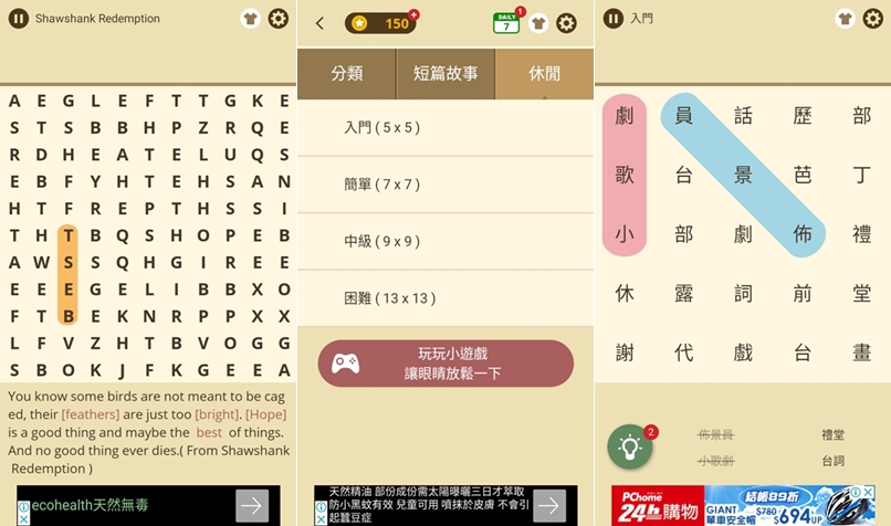 接下來兩款也是學生跟我們這些大人都可能拿來玩,當作訓練用腦力、判斷力及手速,有連連看、拼圖跟填字等題型,給小朋友當課外複習也不錯。