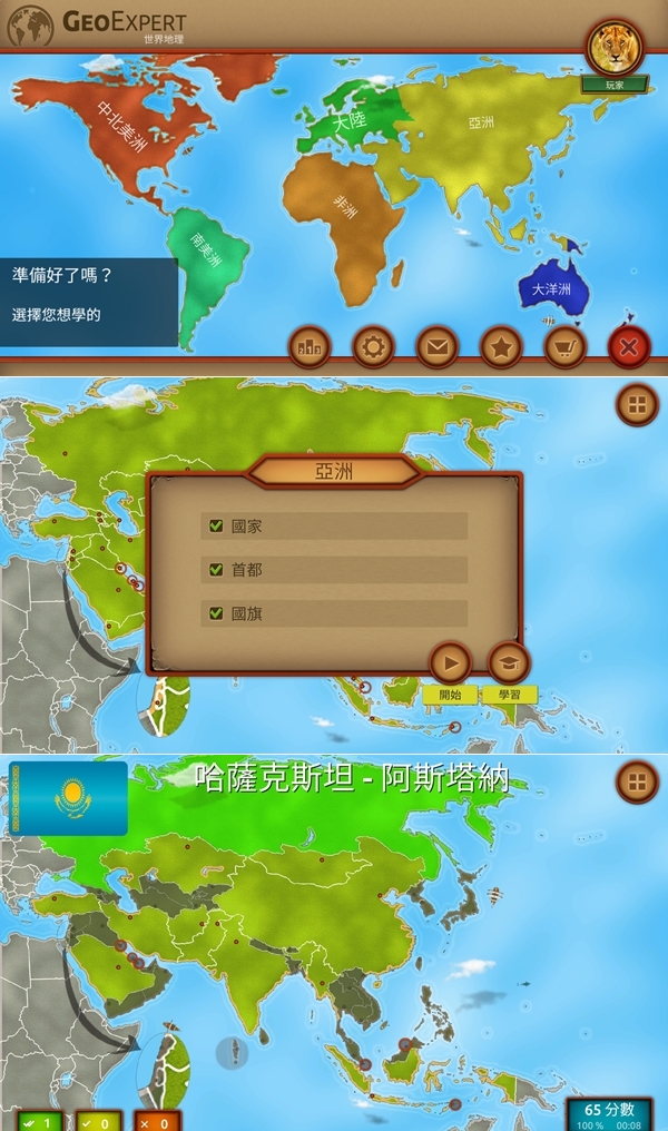 學地理就要看地圖啊,這款世界地理是藉由遊戲的方式,看你要用國家、山脈還是河流來當考題,APP 出題後再用手指點出位置,並設定國家、首都、國旗等要顯示出的項目,學起來也不會那麼抽象。