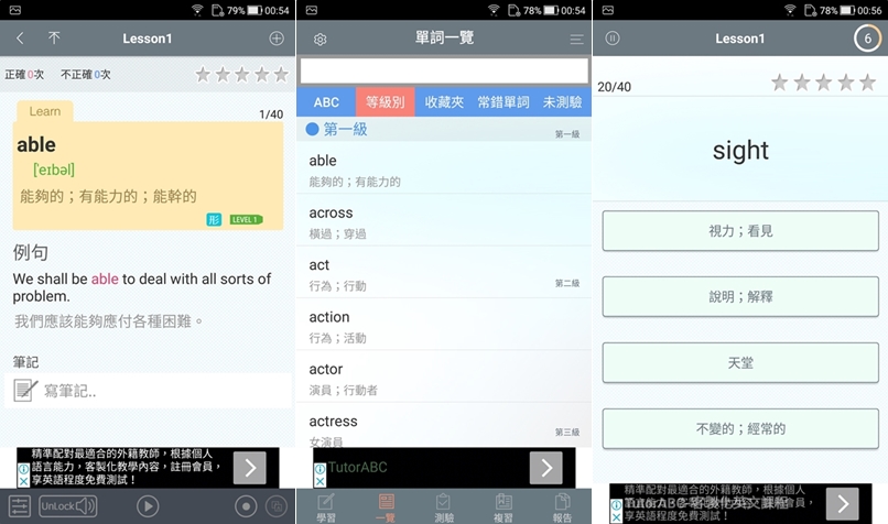 其實學習類 APP 最多的就是英文了,最難分級的也是英文,畢竟現在學英文年齡越來越小,就算名稱上有寫依照什麼考試設計,但也不一定要有備考才可以學,像下面的例子是國小範圍,但阿湯相信很多人都需要複習一下。