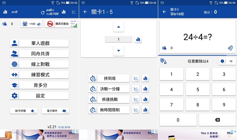 前一款是以基礎的加減乘除為主,這版就是比較難一點的乘法,但還是很適合中小學生練習,尤其對戰模式在一定時間內比誰速度快,拿個平板就可以讓兩個孩子玩個過癮。