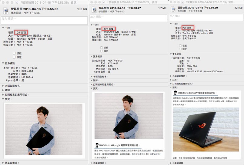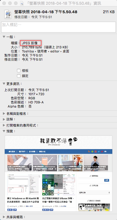 接著使用快速鍵截圖,就是 JPG 格式了,如果覺得預設的截圖快速鍵太複雜,可以參考