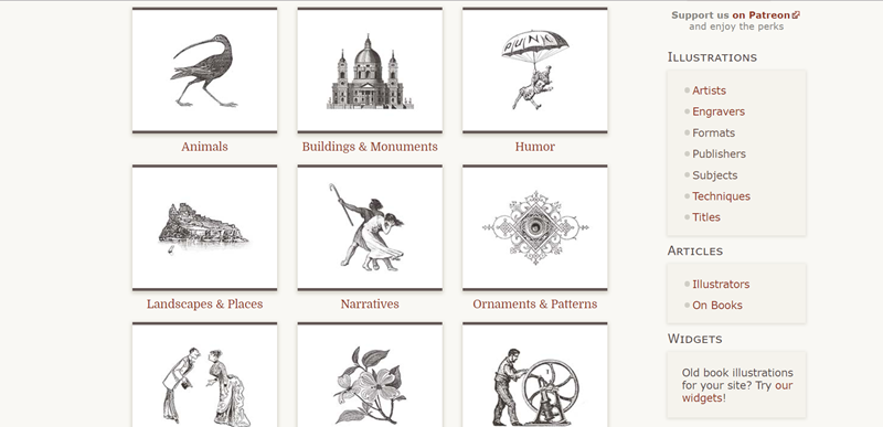 日系圖庫都可以找到很多好看的素材,最近看到一個網站蠻特別的,「Old Book Illustrations」收藏了 17 世紀末到 20 世紀初的舊書插圖,包含各式主題、出版商、格式、藝術家等類別,以單色、彩色繪製或雕刻方式來呈現,並提供不同尺寸免費下載,資料相當豐富,快來收集。