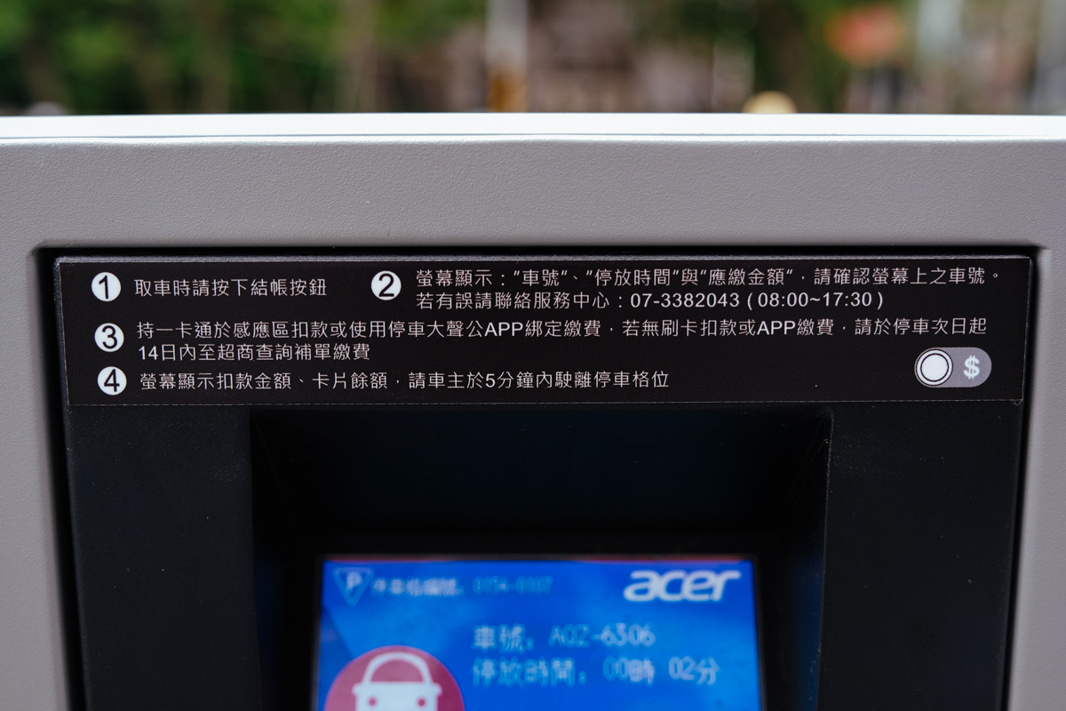 繳費的部份,由於阿湯之前在台北都是用停車大聲公自動扣繳…這次來高雄洽公,第一次接觸這個智慧停車服務,發現它支援一卡通,按下按鈕後出現計費,只直接用一卡通感應就能完成繳費。雖然多了個繳費方式還不錯,不過阿湯更推薦用「停車大聲公」設定扣繳的方式,因為完全不需要來按這按鈕,取車時直接開走,他就會感應到你離場,然後自動計費傳送到 APP裡自動扣繳,比一卡通更加的方便,而且是綁定信用卡,如果信用卡有停車優惠或可以累積哩程、回饋現金等,都會比用一卡通來的更加划算。