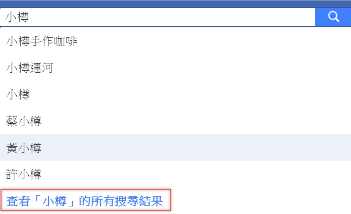 先在置頂的空白列輸入要搜尋的關鍵字,按 Enter 後再點查看所有搜尋結果。