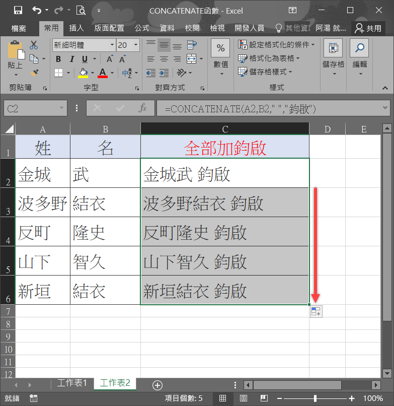 如何運用函數「CONCATENATE」合併儲存格?