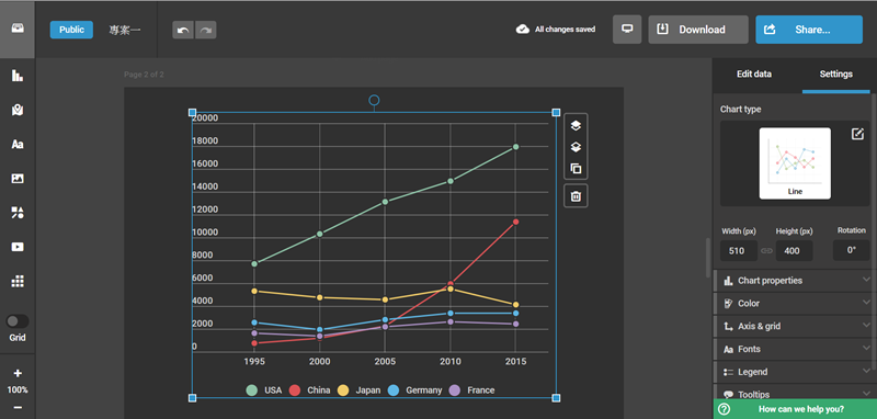 圖表的話就是屬性、配色、XY 軸的標題與間格等等。