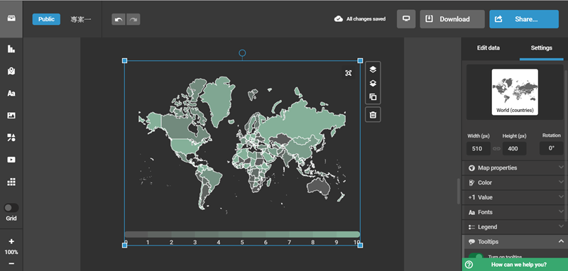 再來加個地圖,免費帳號只有世界地圖和美國地圖可選擇。