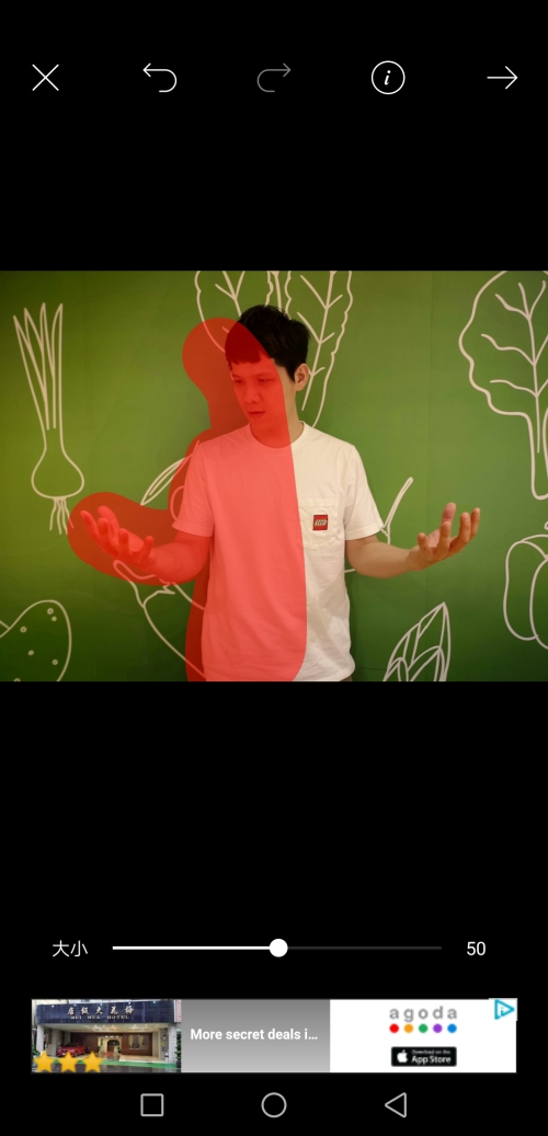 4. 用手指塗抹出想要呈現出分散效果的區域,下方還能調整想要塗抹區域的大小。