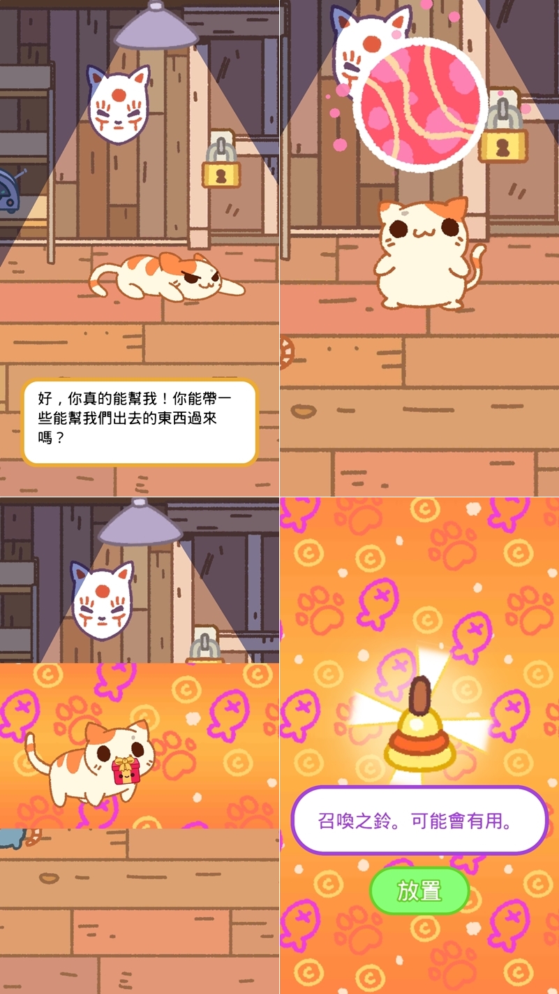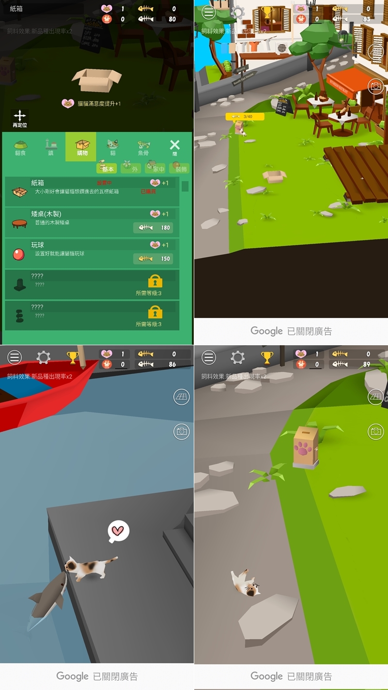 貓咪相關的遊戲應該是最多的,可能是喜歡貓咪的人比狗或其他動物多吧?連阿湯都想整理一篇貓奴必備手遊了,這款擱置類的養成遊戲多達 40 種以上的貓咪,透過蒐集魚骨頭來購買物品佈置家園,貓咪會到處晃並跟鯊魚互動,又有貓又有魚還可能有其他小動物,就是要不停看廣告拿東西。