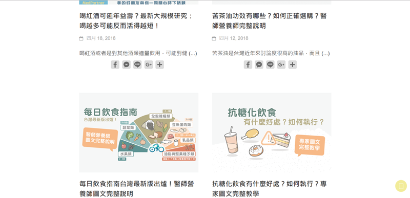 保健營養這區也有蠻多實用的文章,例如紅酒及苦茶油的功效或是抗醣化飲食的好處,也有最新版的每日飲食指南,都會由醫師及營養師進行完整圖文說明或教學,不論有沒有這方面的問題都可以進來補充新知。