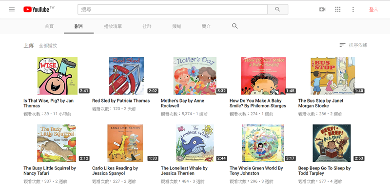影片片單從縮圖看來畫風蠻多元的,書名和作者也都有標明,長度都不超過五分鐘,適合留一小段時間放鬆、慢慢學習的方式。