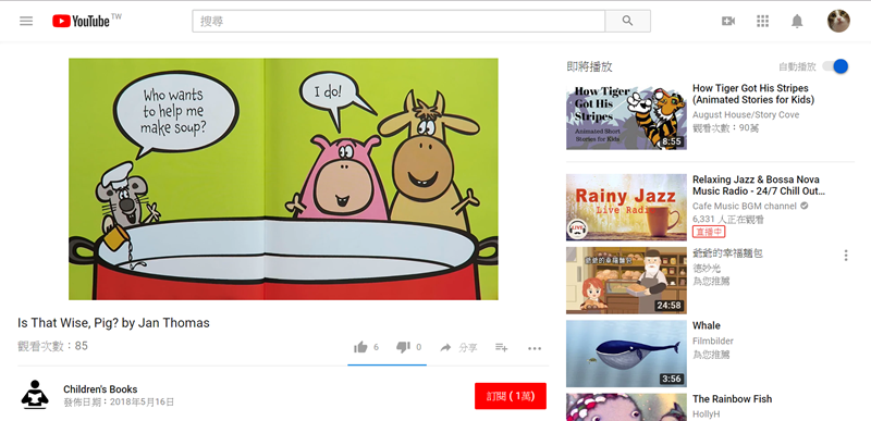 教育類 APP 懶人包時遇到的困難點:難以照年齡分級,尤其是英文…這次來分享一個 YouTube 頻道「Children's Books」,收集了上百部童書繪本影片,以圖文閱讀的方式呈現,並附多國語言字幕,不管是家長與孩子一起閱讀共享親子時光,或是給孩子睡前聽都很適合。