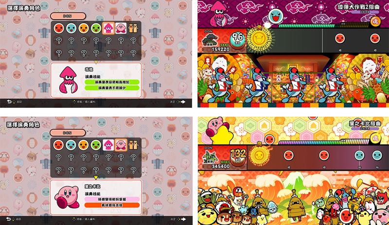 《太鼓之達人 Nintendo Switch 版》 還會有演奏角色人物解鎖,而且似乎每個角色也會有不同的技能來幫助玩家在演奏中取得高分。這款遊戲能夠支援最多 4 台主機一同演奏,也的確是相當符合 Switch 致力於讓遊戲成為與家人、好友等一同歡樂的好幫手目標呢!