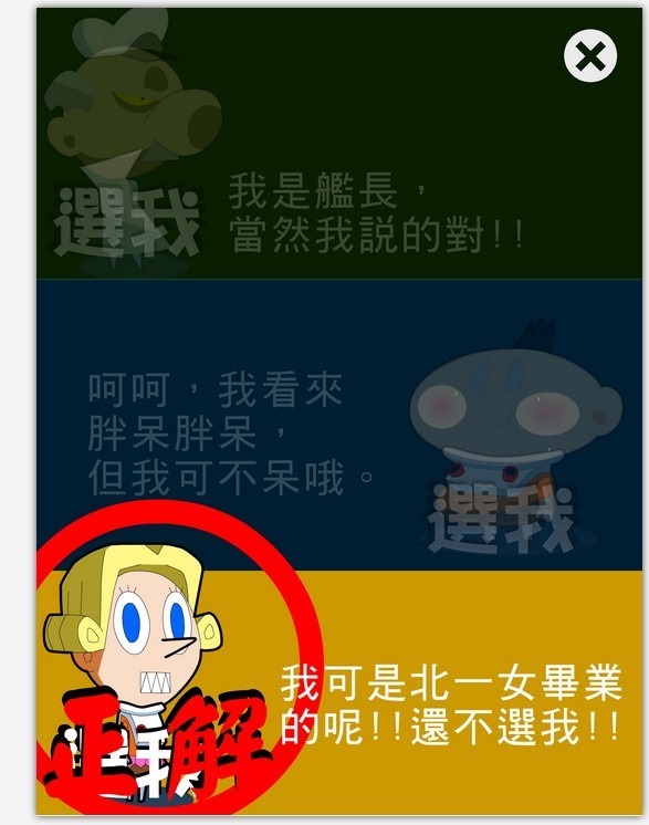 然後就有三個人分別出來解說原因,讓你選擇,是說這讓阿湯想起某個電視節目呀。