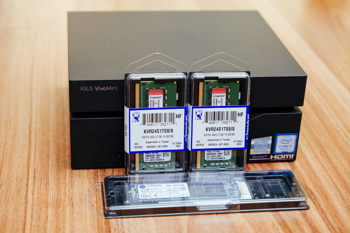 阿湯雖然現在幾乎都是用 Mac 電腦居多,不過偶而還是有用到 Windows 電腦的時候,前陣子就因為工作需求乾脆就買一台迷你電腦,不過當初購入想說需求不高就選了最低規格,現在有點後悔覺得不夠用,所以最後自己動手換 SSD 以及記憶體,和以往升級一樣,只要規格有符合,我就會選用 Kingston 的產品來升級,這次使用的分別是 Kingston m.2 SATA SSD 固態硬碟(SUV500M8/480G)以及 DDR4 2400MHz 記憶體(KVR24S17S8/8),換完後覺得電腦大復活,順手也記錄一下這次升級硬體的過程給大家參考。