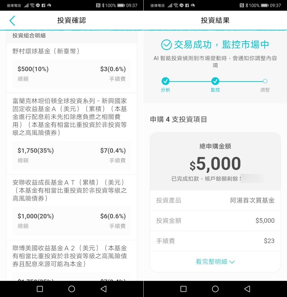 最後阿湯也推薦大家,在使用 AI 智能投資的同時,其實你也可以觀察看看你的 AI 智能投資組合中,每個產品的走向跟獲利穩定度,然後藉由那個結果再考慮到自選投資中去加碼申購也是不錯的選擇,簡單的說,看準潛力股再加碼投資,算是透過 AI 智能投資去學習並了解各個產品,最後你也可以變成一個基金的老手,讓投資這件事更加得心應手。