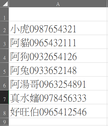如何將同一格的姓名和電話分開?
