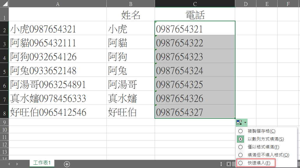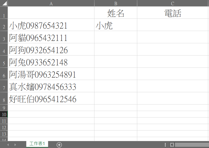 電話也成功分離了,很簡單吧,不用函數也不用任何算式就達成目的。