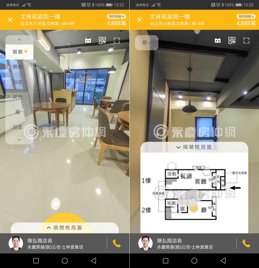 相當重點的功能來啦,就是這「實境找房」,可以依據屋內每個空間觀看環景照片,快速透過 APP 就能先看過室內環境,其實光這個照片看完就會決定你想不想出門去看現場,這功能真的幫了我不少忙,可以少走很多路、少曬很多太陽啊。