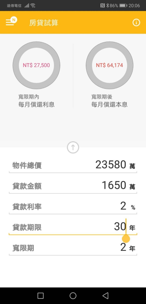 最後,看上喜歡的房子,也去實際看過了,想要買之前別忘了可以用內建的房貸試算功能先進行試算,一般來說每月要支出的房貸最好不要大於你薪水的 1/3 為佳,提供給大家參考哦。