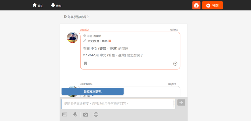 以這位母語為越南的網友 PO 的問題來看,就算已經有人回覆,還是可以輸入自己的回答,包括文字、語音、圖片都能使用。