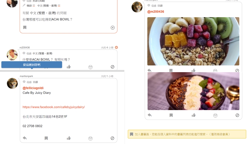 除了語言相關,也可以詢問當地的一些風土民情,像這位朋友就給了一個食物的名稱,問台灣哪裡可以吃得到,底下也陸續有網友提供協助。