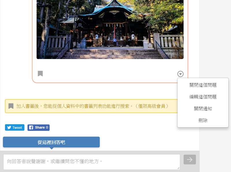 也能隨時編輯或刪除問題、關閉通知,高級會員的話可以加入書籤收藏(自己的或別人的問題都可以)。