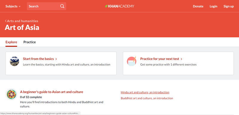 以亞洲藝術為例,共 241 個主題,每個主題底下又分好幾章,可從基礎知識入手或直接跳到想看的章節,還有測驗部分可讓你驗收學習成果。
