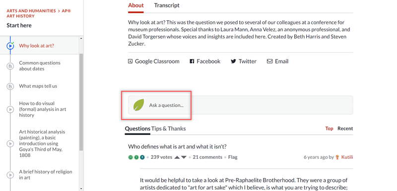 底下也開放提問及討論相關內容,也可以針對留言投票或加入書籤,不過要發問之前必須先註冊,選擇你的身分、學籍、感興趣的主題,才能繼續使用。