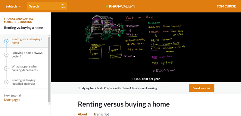 也會有全部都是影片的課程,像這章是在金融和資本市場底下的租房與買房單元,就完全以影片形式呈現,內容是電子黑板的教學模式,蠻特別的,也可以開字幕輔助學習。