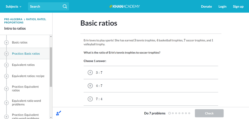 讀完當然要進行測驗,看看成果如何,如果答不出來還可以看影片提示,像這種數學問題就算是英文形式應該也不難看懂,很適合學生自己練習,美國某些學校已經採用「回家看可汗學院影片代替家庭作業」,甚至列入正規學分,可見其影響力。