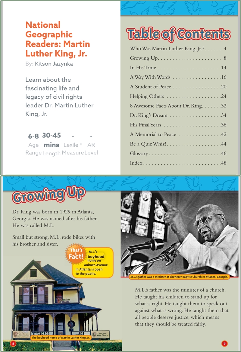 每本書的首頁都會有適用年齡、時長、Lexile 閱讀分級、AR 程度,像上一本適合五到七歲的小朋友,這本是六到八歲,不過這是以國外(通常是美國)的兒童學習進度來評斷,台灣的話應該還要列入英文程度一起參考,像下面這本人物傳記就稍微難一點。