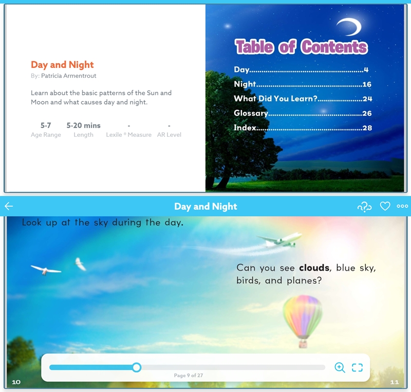 主題系列中有不少關於認識世界的課程,像這本非有聲書,是以白天黑夜來介紹基礎的科學常識,都是淺顯易懂、可輕鬆學習的內容。