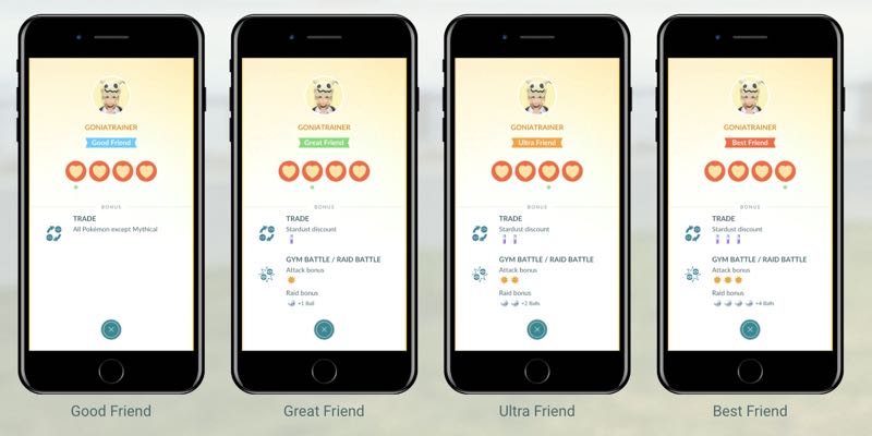 而贈送友情禮物、和朋友一起參加團體戰或道館對戰都能提升「友誼等級」。友誼等級越高,和朋友一起玩遊戲時能獲得的獎勵就越多。舉例來說,如果和友誼等級為「給力好朋友」的朋友一起參加團體戰或道館對戰,進行攻擊時還可以獲得「攻擊獎勵」讓形勢更加有利。
