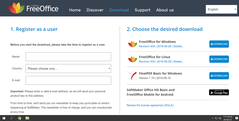 這款是 SoftMaker 推出的軟體,首頁直接點中間 Download 按鈕,開始下載最新的 2018 版本。