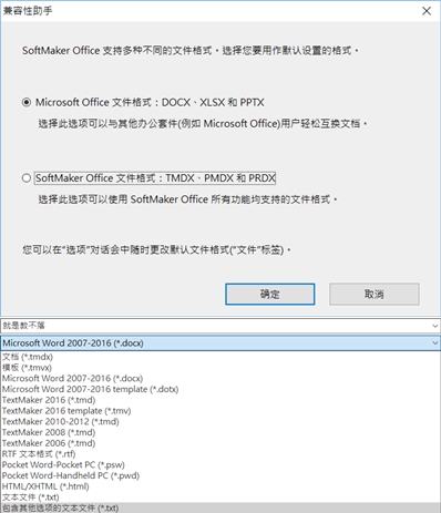 要存檔的話可以選擇 SoftMaker Office 格式,阿湯是轉成 Microsoft Office 文件格式,輸入檔名後再點選 Word 2007 - 2016 ,這樣就可以用微軟辦公室系列來開啟。
