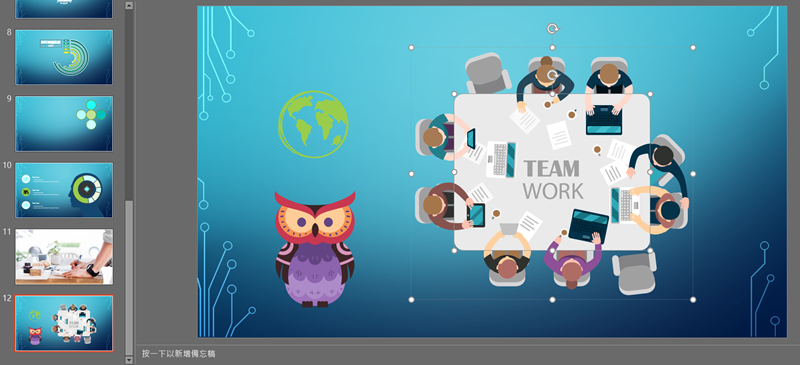 可以用拼圖的方式,設定內容物件後,一張大圖一眼就能瀏覽簡報格局。