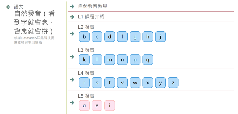 語文部分來看英文,自然發音這課也是可以再一一點進去查看細節,看影片說明並自行練習。