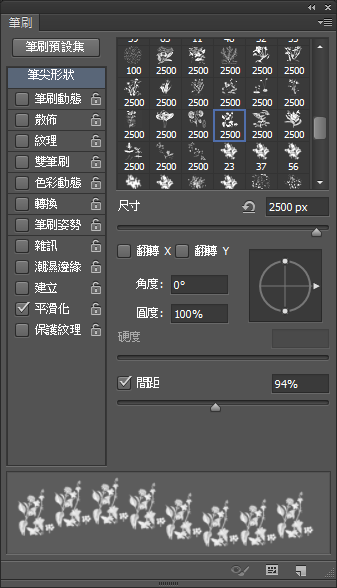 筆尖形狀、間距、翻轉角度記得也要調整,不然會糊成一團。