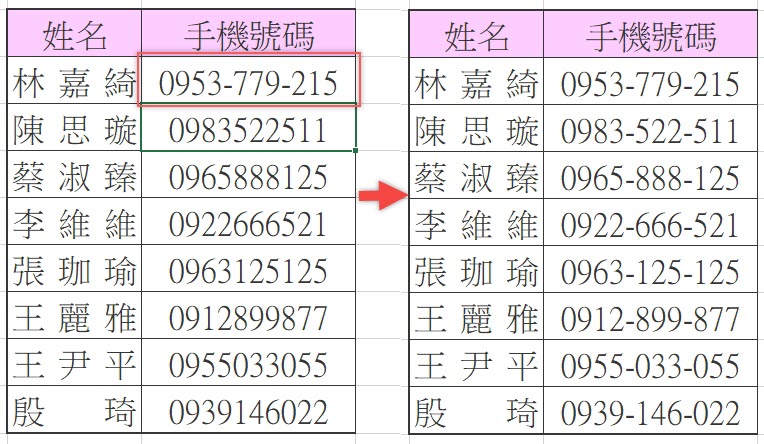 Excel 小教室 - 手機號碼前的零無法顯示?你該知道的 N 個儲存格設定」這篇有提過,先更改儲存格格式就能解決,不過不同的儲存格格式也會影響到一些基本操作,今天除了教大家幾種分段顯示手機號碼的方法:將「0912567567」變成「0912-567-567」,也會順便再提到關於「0」的設定,往下看。