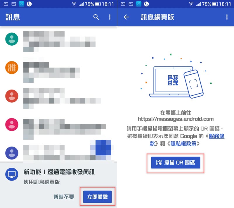 雖然現在用 LINE 和 FB Messenger 等免費傳訊軟體的人很多,但手機簡訊還是有它的市場,尤其一些沒有智慧型手機的人還是會有發簡訊的需求,Google 底下的 Android Messages 最近推出網頁版的「Messages for web」,可以透過手機掃描網頁連線後,在瀏覽器上同步並編輯簡訊內容,也能從電腦端發送訊息,如果一次要輸入大量訊息就不用點到手痠,對視力也有幫助。