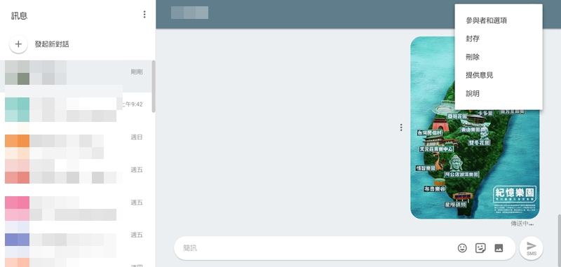 發送後對方馬上就收到了,不過貼圖和照片卻一直沒成功,不知道是什麼原因,如果這邊有朋友成功的記得分享一下哦,要刪除單則訊息或是點右上角整則刪除都 OK,也能封存。