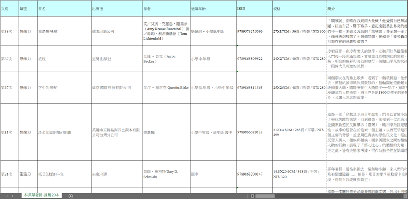 阿湯選擇試算表格式下載,書單是以想像力、未來力、生活力、美感力、表達力來歸類,給各位老師、家長做參考。