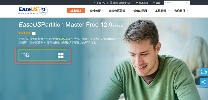 在此之前也分享過同廠牌的檔案救援軟體 EaseUS Data Recovery Wizard 做為大廠旗下自然比較少安全疑慮,首頁按圖示下載最新的