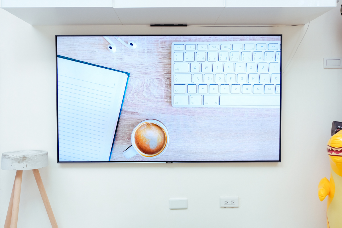 首先當然就是電視的設計,除了零間隙壁掛架之外,電視的極窄邊框,以及前一篇開箱文提到的美型集線器,這都讓電視本身看起來更加的簡約,不再像以往雜亂無章的線所干擾,另外更重要的是有著 10 年不烙印的保證,這也是由於 Samsung QLED 量子電視是使用無機的量子點材料,所以就算是使用時間再長都不會有烙印的問題,也同時也能一直保有鮮明的色彩表現。