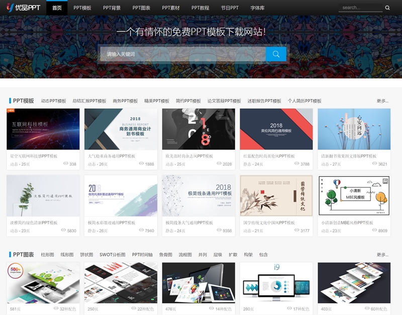 網站名稱正確寫法是「优品」,雖然是大陸網站,但字體都可改成繁體所以不用擔心,首頁可輸入關鍵字搜尋或選擇動態、商務、論文、個人簡歷等用途,質感都不錯。