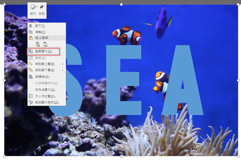 或者想換一張背景也相當容易,右鍵變更圖片即可。