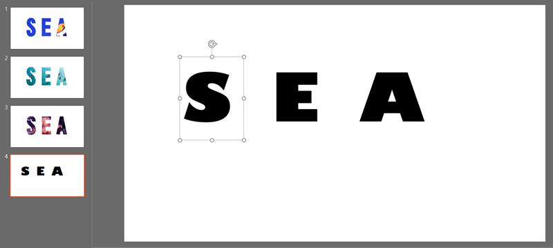 進階運用,阿湯將 SEA 三個字母拆開來,分別進行處理。