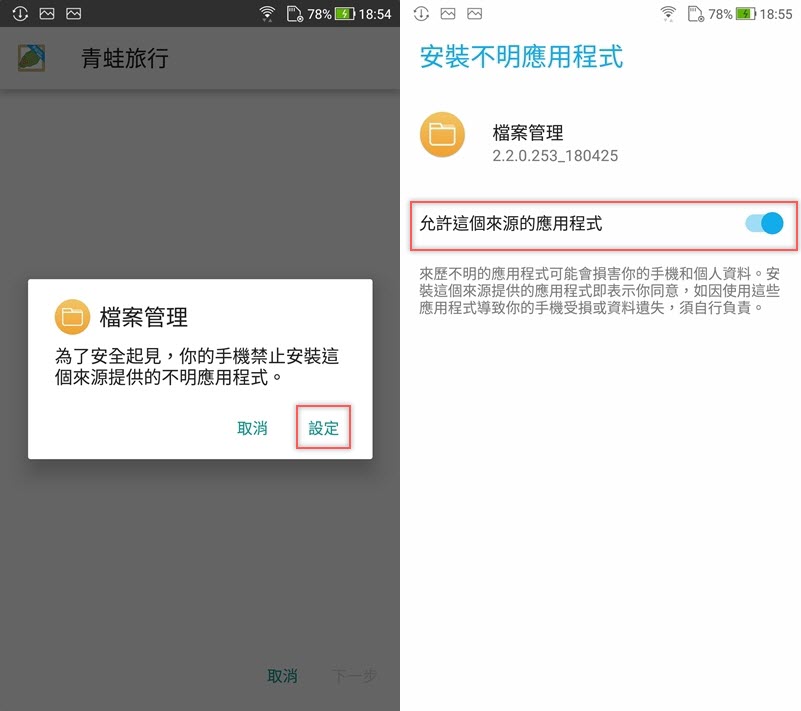 同樣要再設定一次,如果覺得很麻煩乾脆就在前面的「安裝不明應用程式」,這裡先一次全部開啟,不然就要這樣一步一步來,看大家覺得怎麼用比較方便囉。