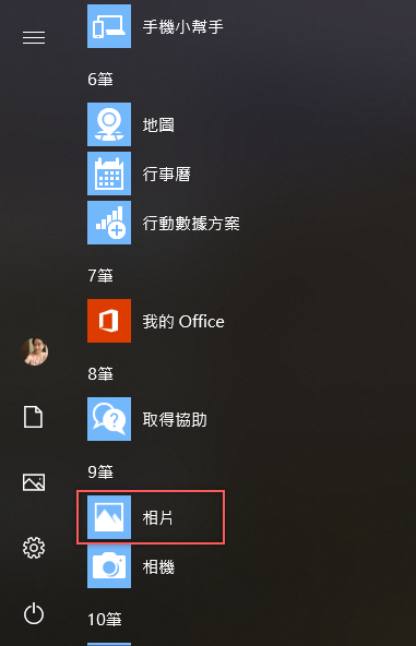 先將「相片」叫出來,很久沒用可能會忘記在哪,點開左下角圖示往下滾到9 筆就會看到了。